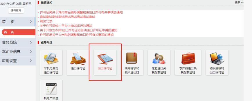 1.在平台内选择进入“进出口许可证统一管理平台”。