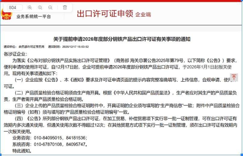 为落实商务部、海关总署公告2025年第79号(《公布对部分钢铁产品实施出口许可证管理》(以下简称79号公告),为便利企业申领出口许可证,编制本指南。