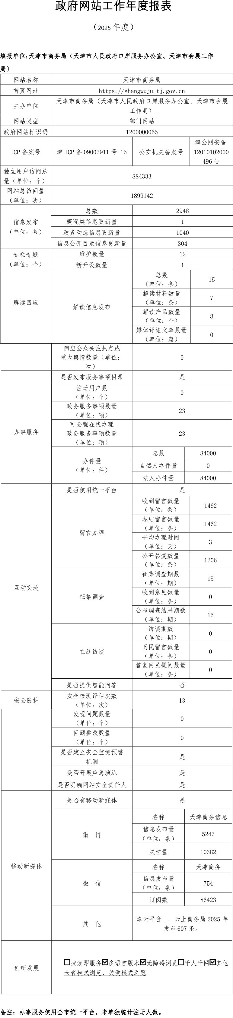 天津市商务局政府网站工作年度报表(2025年度)