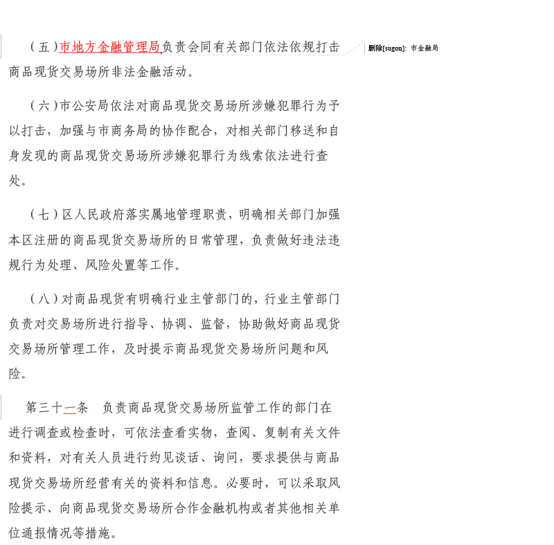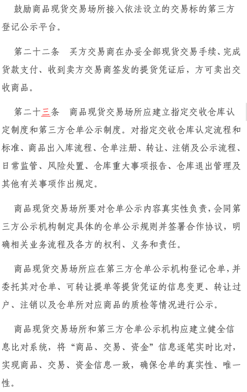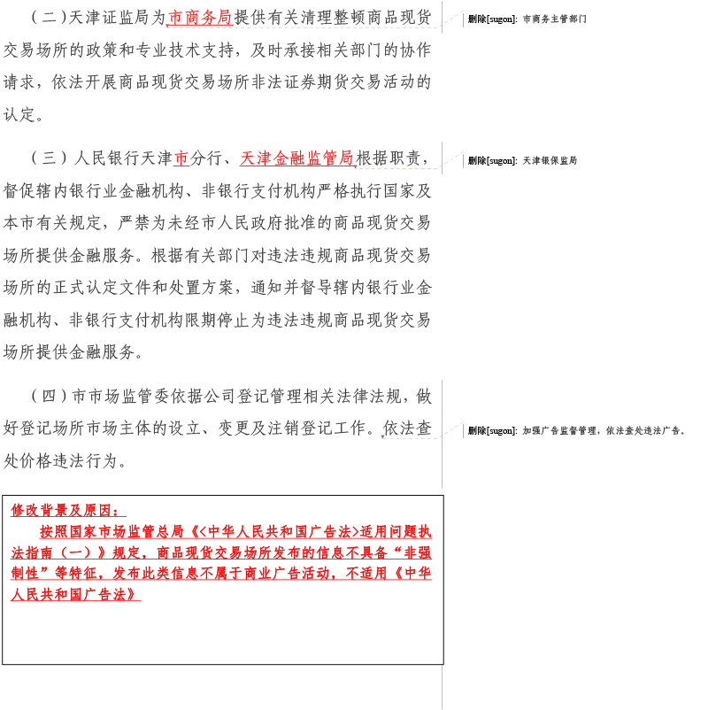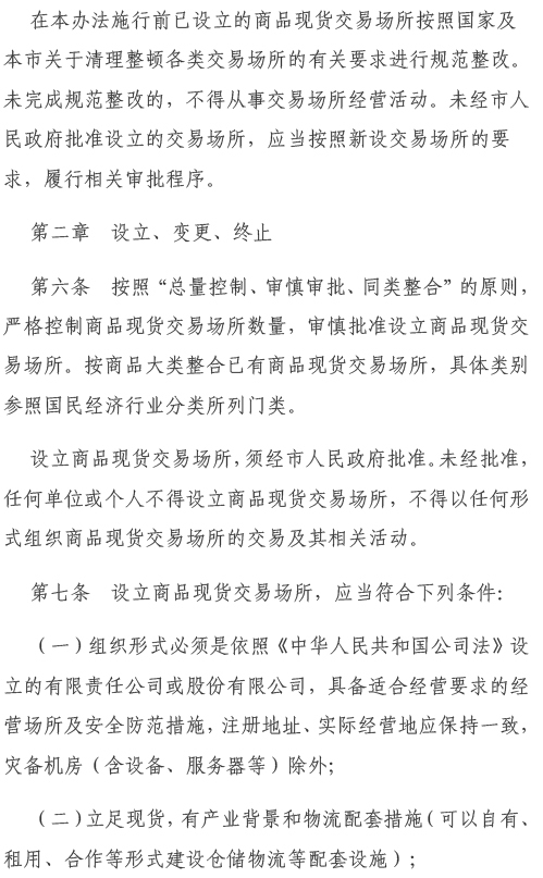 为进一步做好我市商品现货交易场所监督管理各项工作,推动商品现货交易场所盘活发展,服务我市经济高质量发展,我局结合工作实际和对商品现货交易场所监管需求,组织对市政府办公厅20212印发的《天津市商品现货交易场所监督管理办法》(津政办规〔20212号)进行了修订,形成了《天津市商品现货交易场所监督管理办法(征求意见稿)》,现向社会公开征求意见