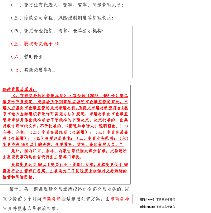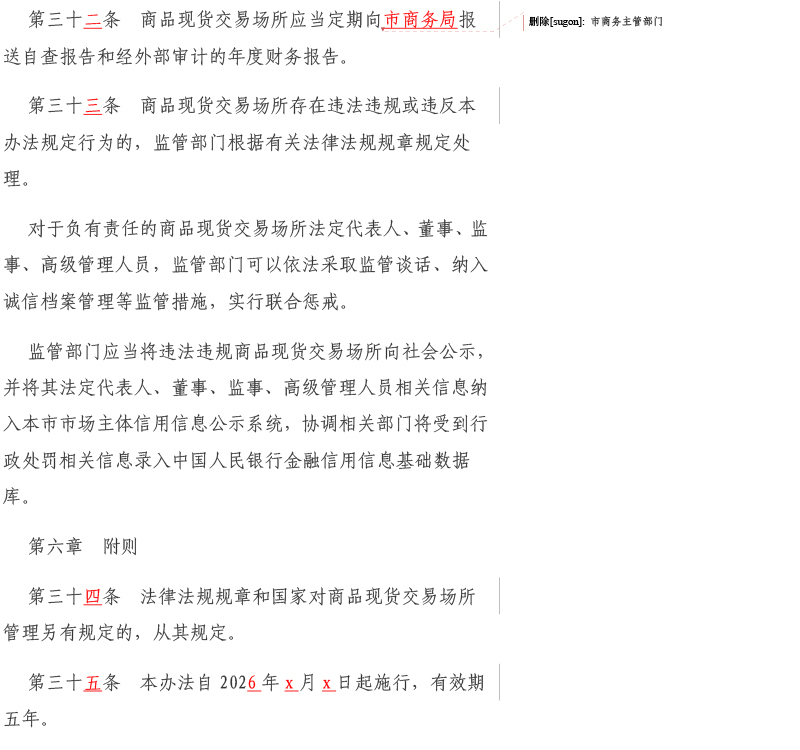 为进一步做好我市商品现货交易场所监督管理各项工作,推动商品现货交易场所盘活发展,服务我市经济高质量发展,我局结合工作实际和对商品现货交易场所监管需求,组织对市政府办公厅20212印发的《天津市商品现货交易场所监督管理办法》(津政办规〔20212号)进行了修订,形成了《天津市商品现货交易场所监督管理办法(征求意见稿)》,现向社会公开征求意见,征求意见时间自2026128日至202625日。请于25日前将有关意见建议书面反馈我局。