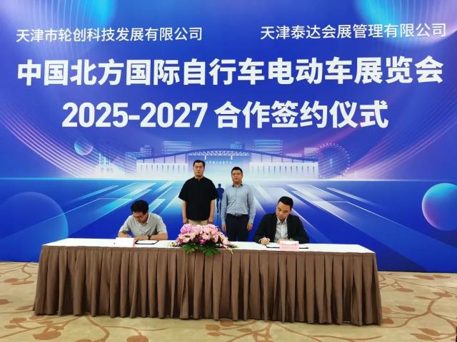 近日,天津泰达会展管理有限公司与天津市轮创科技发展有限公司在天津梅江会展中心举行“中国北方国际自行车电动车展览会2025-2027合作签约仪式”。双方本着优势互补、资源共享、合作共赢的原则,再次达成长期战略合作意向,携手继续打造国内最具影响力的自行车电动车行业盛会。