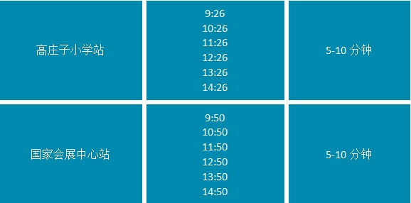每日6班车,途径5个站点,终点站为国家会展中心站,具体情况如下: