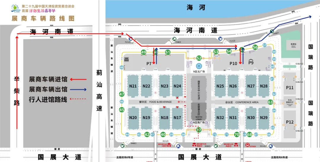 自驾:地图搜索“国家会展中心天津北区F1入口”直达停车场。停车区域为P7、P10。