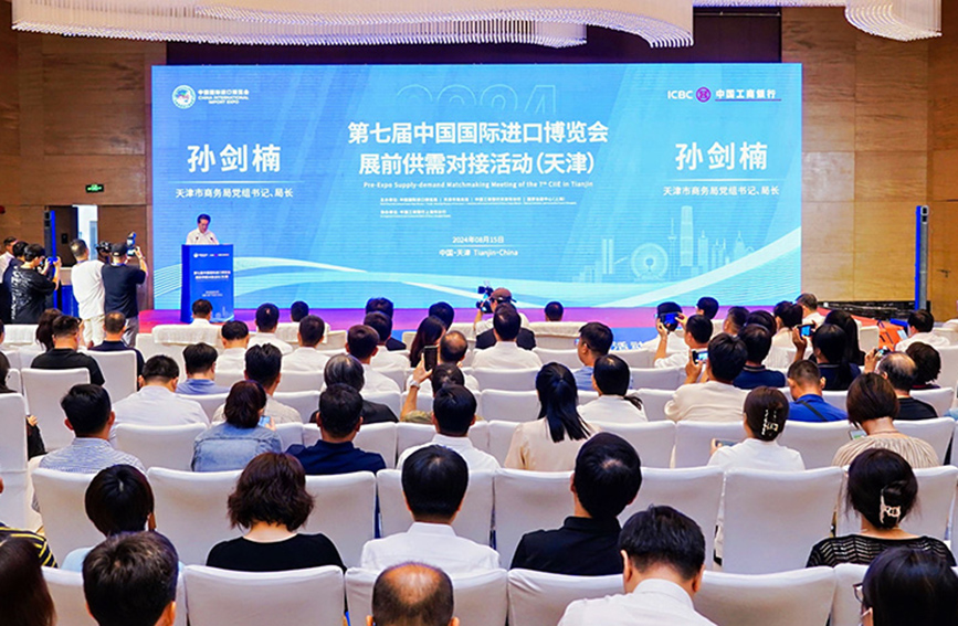 人民网天津8月15日电 (记者张桂贵)8月15日,第七届中国国际进口博览会展前供需对接活动在天津市举办。本次活动由中国国际进口博览局、天津市商务局、中国工商银行天津市分行、国家会展中心(上海)共同主办,中国工商银行上海市分行协办。