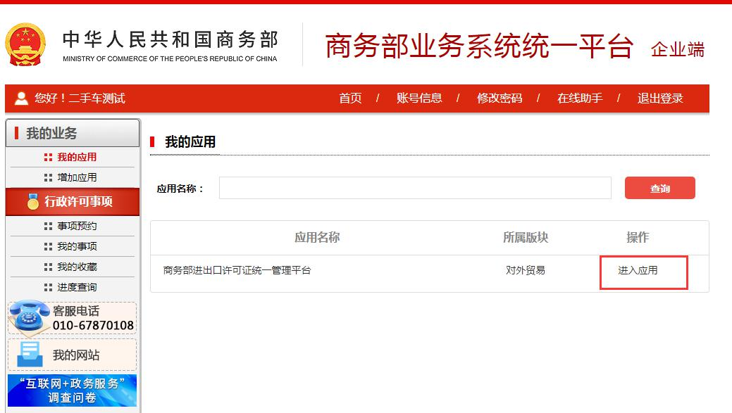商务部业务系统统一平台技术支持电话:010-67870108
