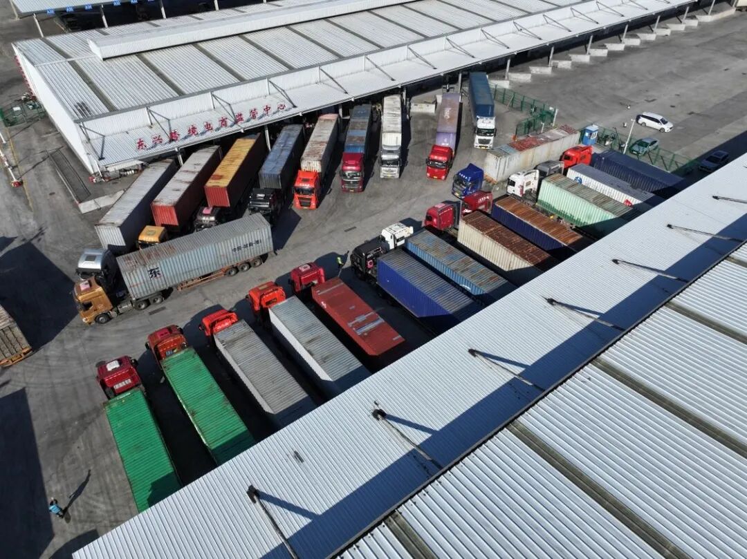 12月21日,东兴跨境电商监管中心车来车往,一辆辆预约通关的货车依次驶入。经海关完成监管查验后,满载鞋帽服饰、化妆品、小家电、数码配件等小商品包裹的货车放行出场,快速发往消费需求旺盛的东盟市场。