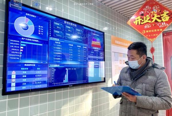 “老婆,咱们这个月老客户复购率达到了76%呢!”飞飞水果摊位前,张文飞夫妇正在把近期销售的“爆款”砂糖橘摆在最显眼的位置,虽然他们才入行两个月,可生意却一天比一天红火。水果生意的耗损率一向偏高,可小张每天进货与销售基本都能持平,这让很多“前辈”都有些不解,他们不知道,小张的“能掐会算”其实都是在“智慧小二”农贸系统的指导下进行的。“每单售卖情况都会自动上传到系统,大数据会帮商户精准分析哪些水果卖得好、老客户复购率变化等,有了这个卖菜神器,像小张夫妇这样的新手也能很快驾轻就熟。”新世纪菜市场市场经理王伟东告诉记者,通过“智慧菜场”“智慧小二”等大数据应用,为消费者、商户和市场管理三方带来了实惠和便捷。“比如,顾客购物后会得到附有追溯二维码的小票,一张小票就能做到‘从源头到餐桌’的全程追踪;而智能溯源电子秤会将每单商品称重交易进行实时录入,消费全程公开透明,短斤缺两的事情在智慧菜市场很难发生。
