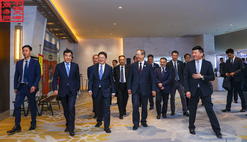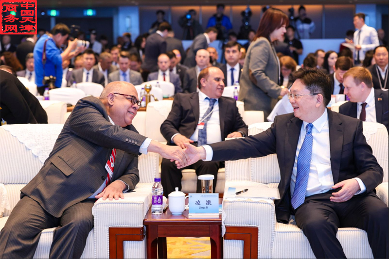 商务部副部长凌激与上海合作组织副秘书长索海尔·汗在中国—上海合作组织可持续发展产业合作大会开幕式交流