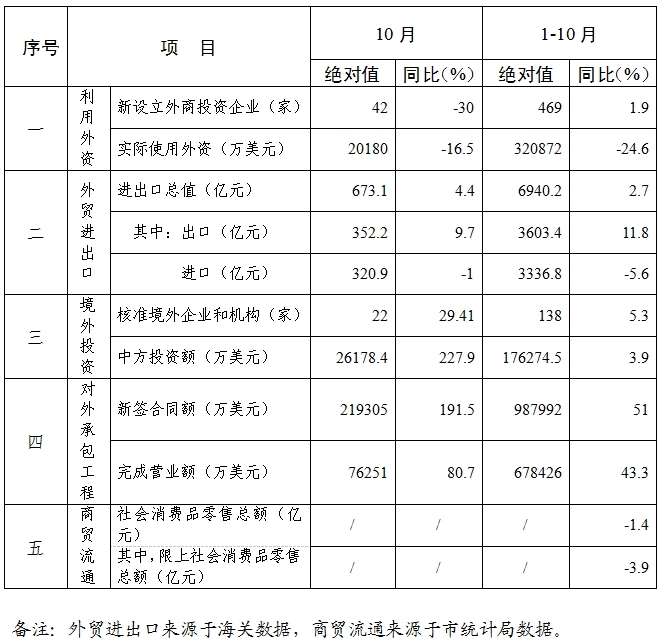 天津市2025年1-10月商务数据